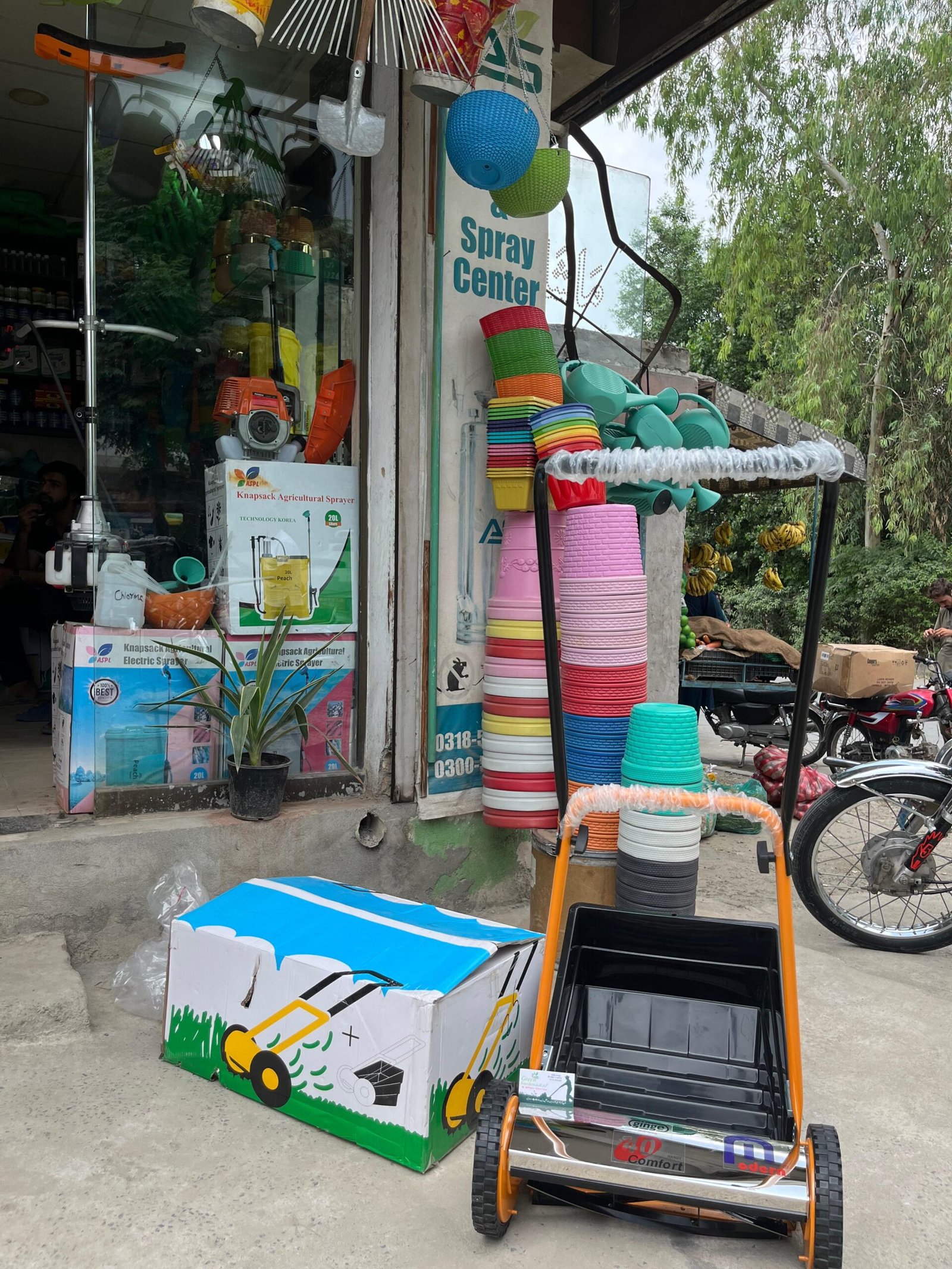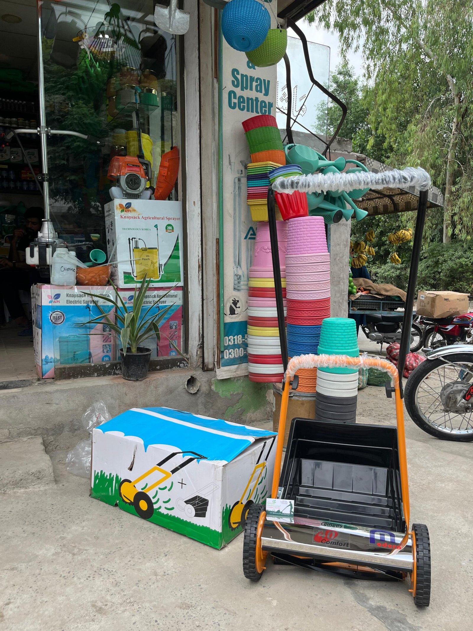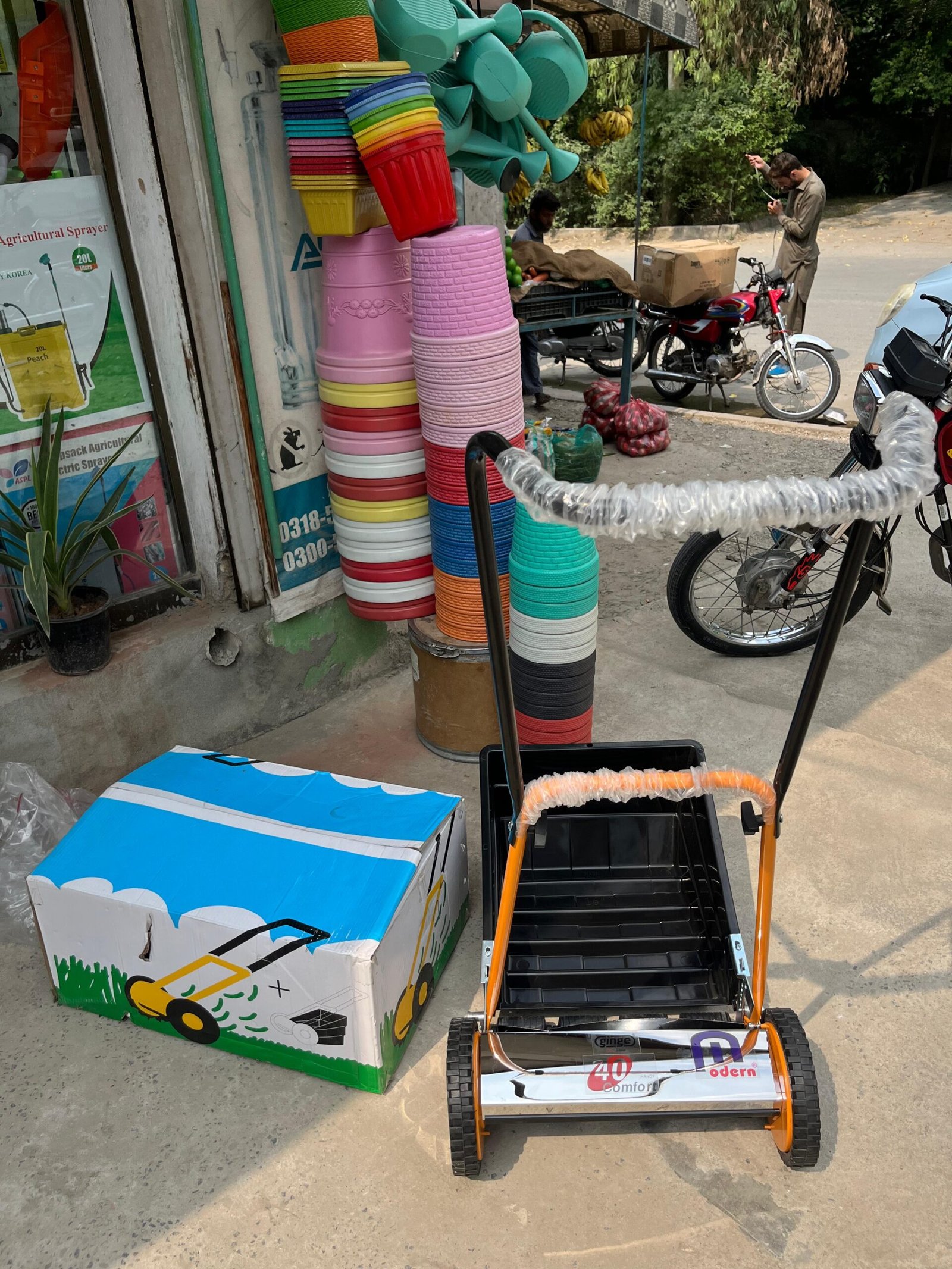 This machine in your picture is a manual push lawn mower (grass cutter). Here are its details: